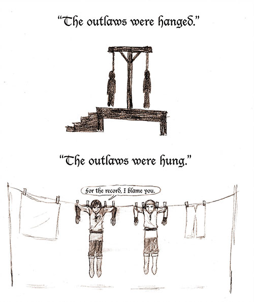 Speakers and writers who value precision know that the past tense of hang, when it means “to put to death using a rope,” is hanged, rather than hung. This applies to both the active and passive voice: They hanged the prisoner and The prisoner was hanged.